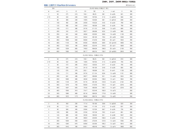 磅级闸阀Z40H、Z40Y、Z40W-900Lb~1500Lb