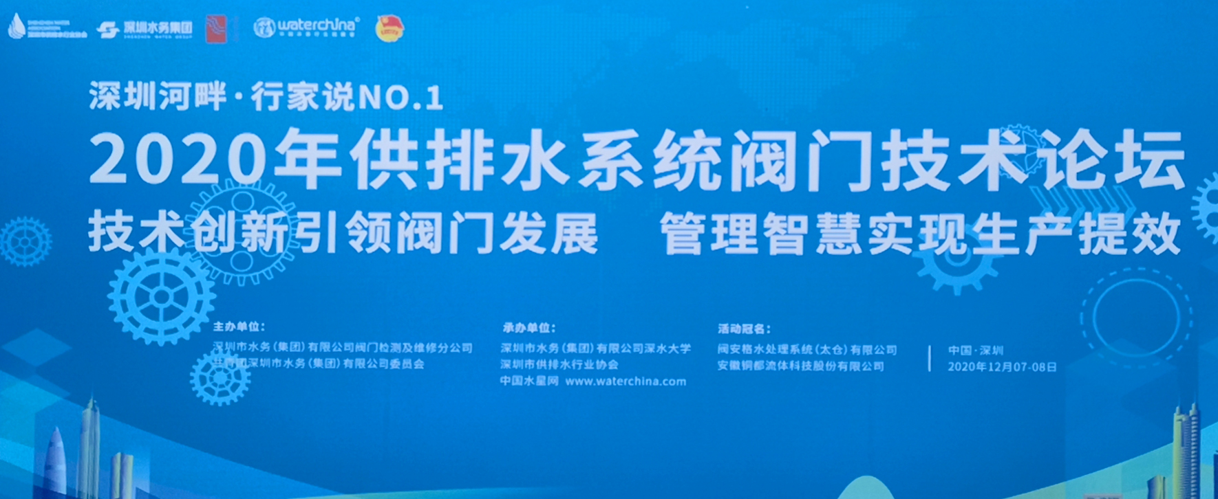 12月7-8日,深圳市水务集团联合深圳市供排水行业协会主办,由铜都流体冠名的“2020年供排水系统阀门技术论坛”在深圳市顺利举办。