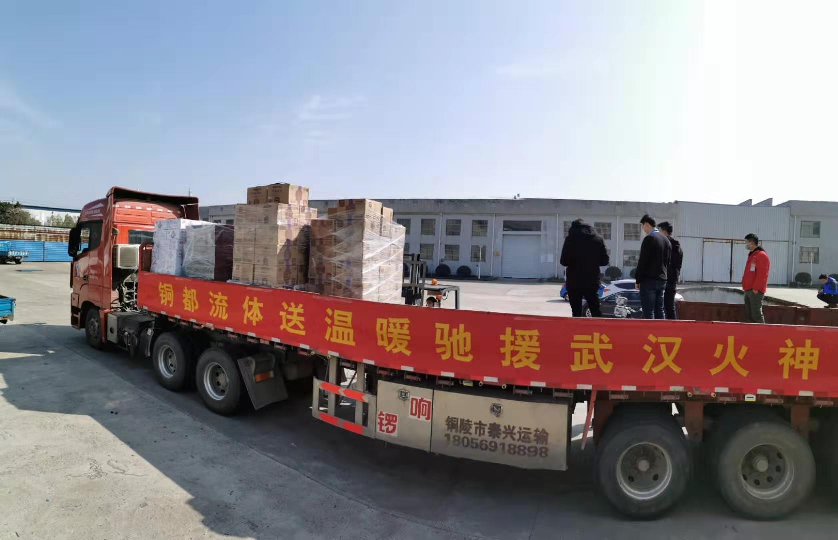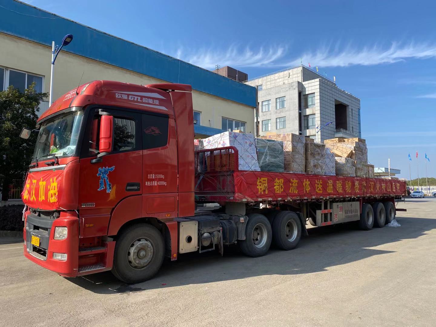 1月31日下午,满载铜都流体全体员工的爱心和支持的捐赠物资,从铜陵出发运往武汉,今晚即可抵达武汉火神山医院。