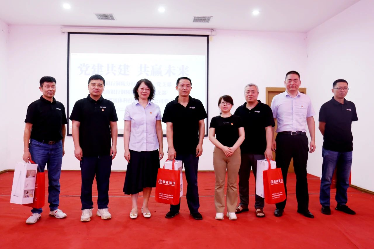 通过此次共建活动,拉近了徽商银行和铜都流体之间的距离,架起了一座沟通的桥梁,联动聚力,把党建工作融入日常生产经营中,为企业发展凝心聚力,确保党建工作都能落地、开花、结果。
