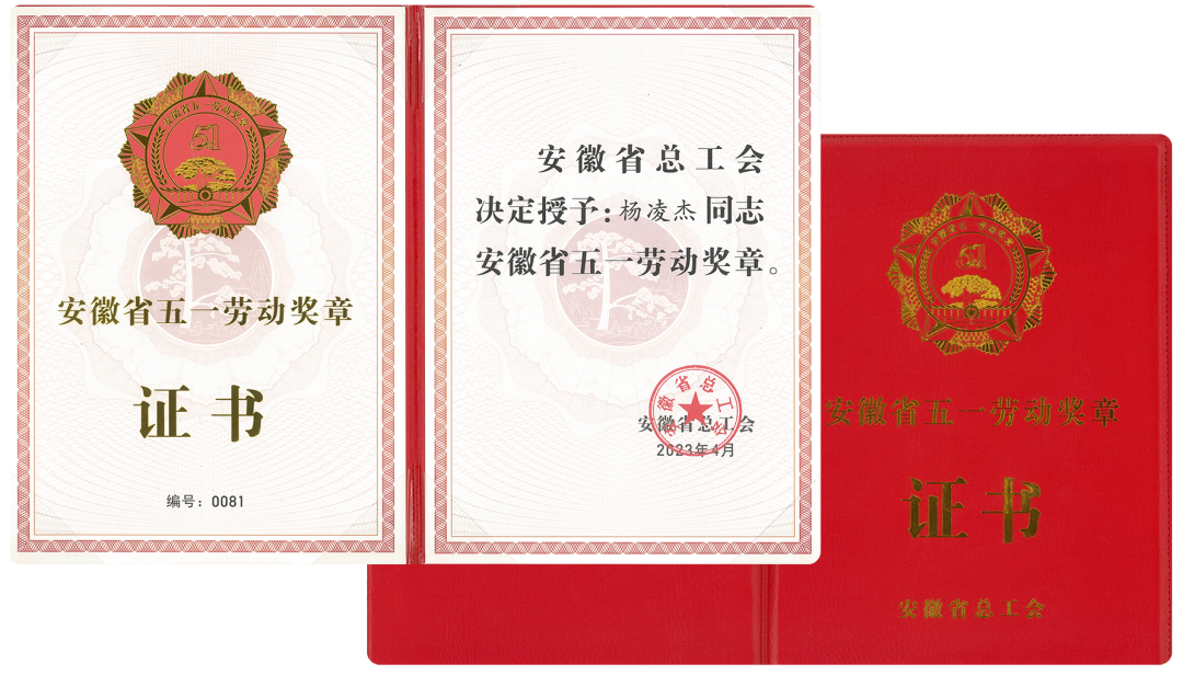 铜都流体党委书记、总经理杨凌杰荣获“安徽省五一劳动奖章”。